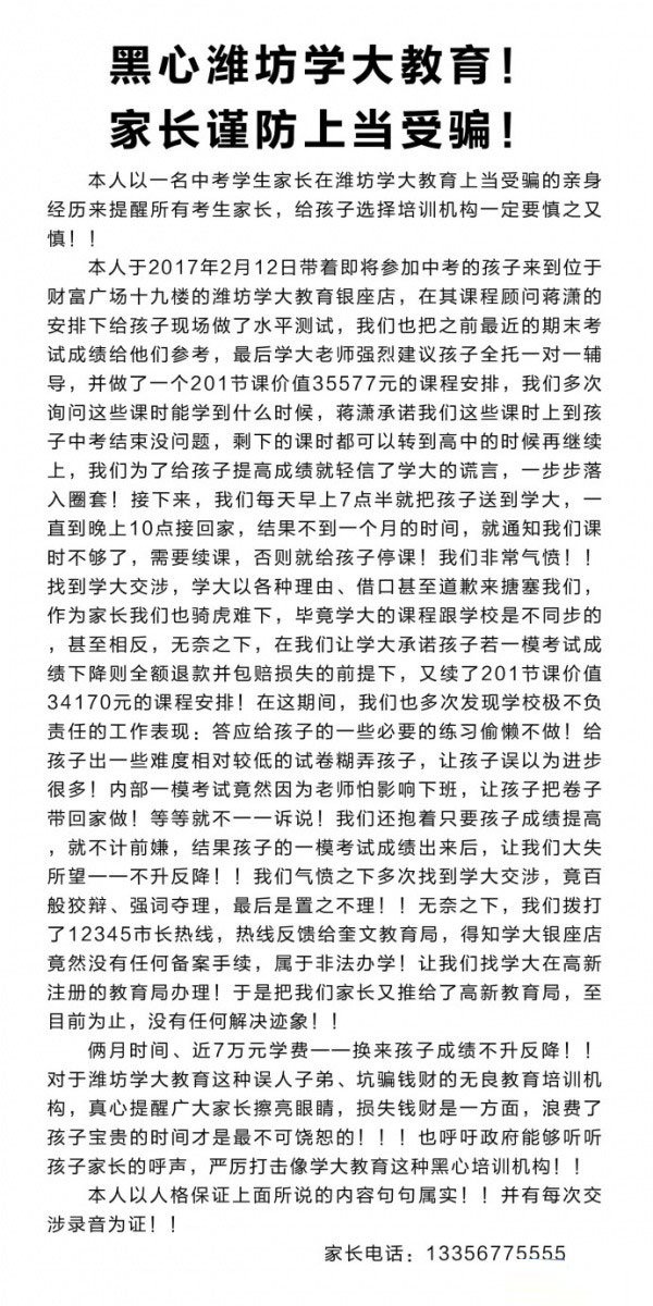 >> 潍坊学大教育被曝光了,家长以后要注意!