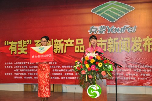 1月7日,由山东国青健康产业集团、潍坊有斐食品有限公司主办的“有斐”系列新产品上市新闻发布会暨首次招商会在国青健康产业集团大楼隆重召开,引发行业强烈关注,吸引了上百名国内外食品专家现场观摩。同时,会议还邀请了食品营养专家进行了讲座。当日,原潍坊市市长王伯祥、潍坊市人大常委会副主任杨继生、上海山东商会秘书长李士苏等各界领导及新华社新华网、中央电视台央视网、科技日报、中国食品报等几十家媒体出席了活动.